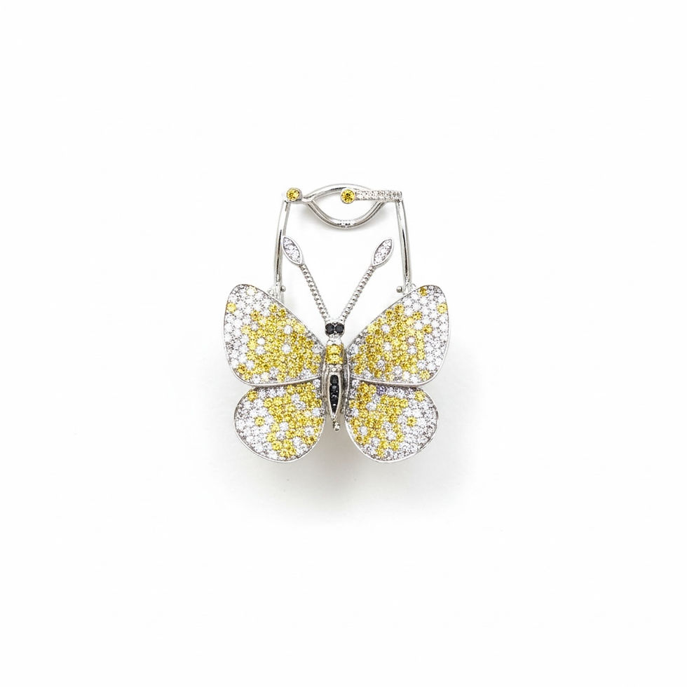 Crafted with meticulous attention to detail, the ring features intricate, filigree wings dusted with a pavé of shimmering stones that catch the light with every movement. Its dual-finger design creates a bold, sculptural silhouette, mimicking the soft flutter of a butterfly landing momentarily upon the hand.